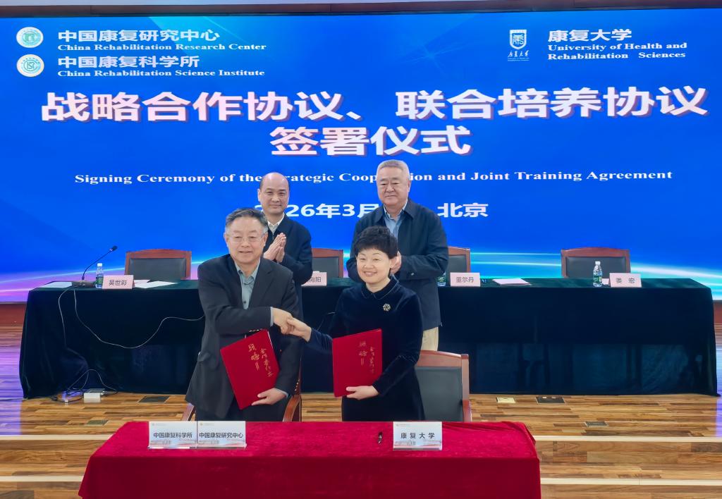 3月2日上午,康复大学与中国康复研究中心(简称:中康)、中国康复科学所(简称:科学所)战略合作协议和联合培养协议签约仪式在中康举行。中国工程院院士、康复大学校长董尔丹,中国残联副理事长胡向阳分别致辞,中康党委书记、主任吴世彩主持仪式。康复大学分管日常工作的副校长姜宏、学术副校长谢胜泉,中康副主任密忠祥、余朝晖、吴惠群,科学所副所长程军出席仪式。董尔丹对中国残联及中康、科学所长期以来对康复大学建设...
