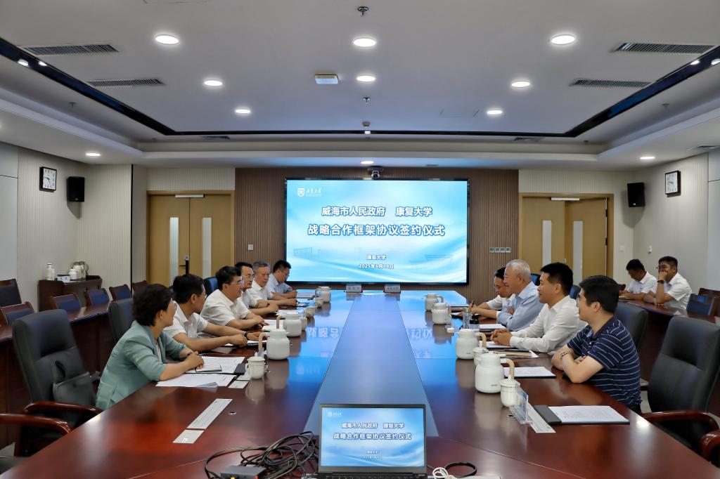 6月18日,康复大学与威海市政府战略合作框架协议签约仪式在康复大学举行。中国工程院院士、校长董尔丹出席签约仪式并致辞。威海市副市长刘奎忠、康复大学副校长毕建国出席活动并代表双方签约。董尔丹对刘奎忠一行表示热烈欢迎。他指出,康复大学是唯一一所以健康促进为核心、在生命健康领域开展创新探索的新型研究型大学,着重开展基础性、前沿科学技术研究,培养拔尖创新人才,在实施健康中国战略和积极应对人口老龄化国家战略...