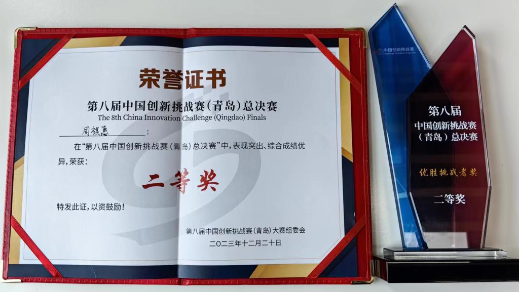 我校教师周祺惠参加第八届中国创新挑战赛(青岛)总决赛并获奖
