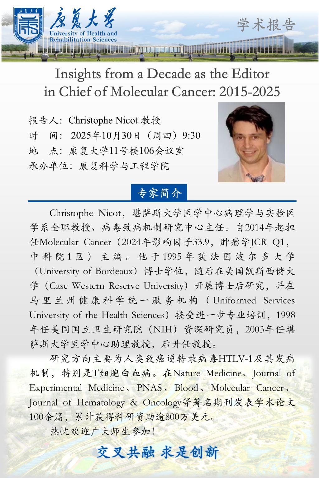 学术报告:Insights from a Decade as the Editor in Chief of Molecular Cancer: 2015-2025
