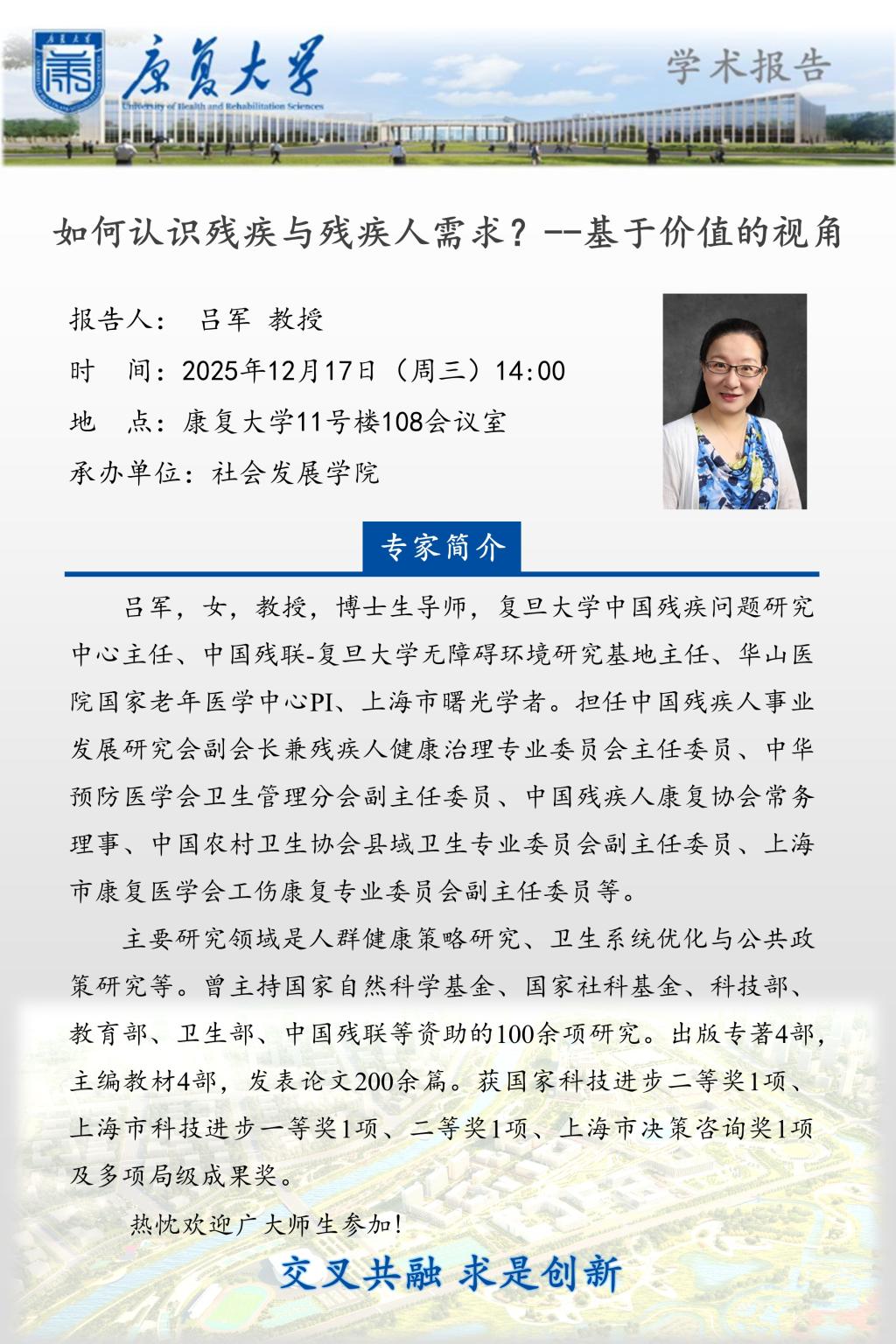 学术报告:如何认识残疾与残疾人需求?——基于价值的视角