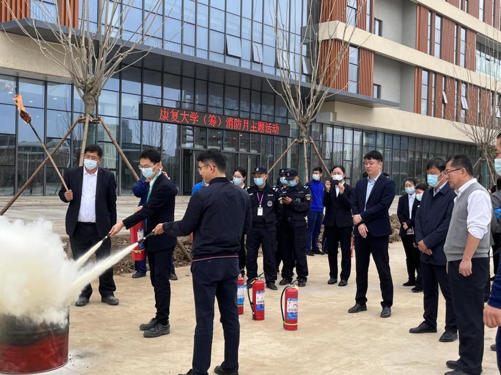 为扎实开展“119”消防宣传月活动,提升学校教职工消防安全意识和抵御火灾、逃生自救的能力,11月11日上午,后勤保障部邀请高新区河套消防中队进校开展消防安全知识专题讲座,并在校区组织现场演练。康复大学(筹)领导小组成员、临时党委委员王伟,驻校区各部门负责同志及物业、安保公司工作人员在校区现场参加活动,驻海信创业中心、工研院各部门相关同志以线上方式参与活动。