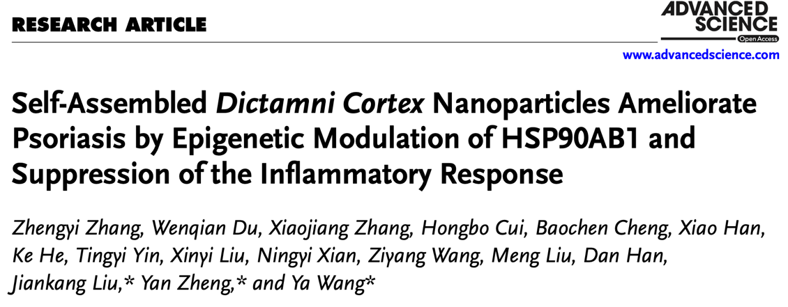 近日,康复大学刘健康和西安交通大学第一附属医院郑焱、王雅等团队联合在国际权威期刊《Advanced Science》发表重要成果,围绕传统中药白鲜皮展开深入研究,开发出可改善银屑病的新型纳米制剂,并揭示其背后关键分子机制,为慢性皮肤病治疗提供新思路和新方向。