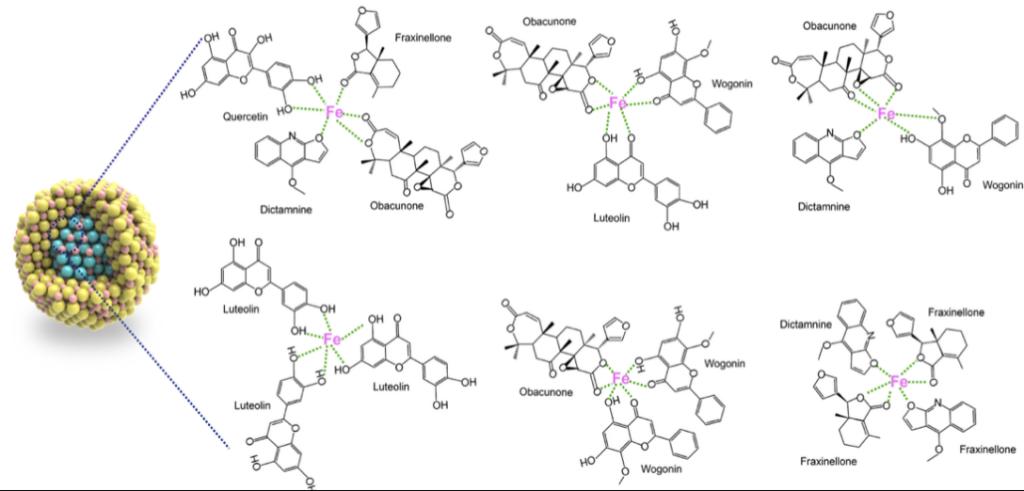 图2 白鲜皮中几种主要生物活性成分与Fe3+自组装形成NB