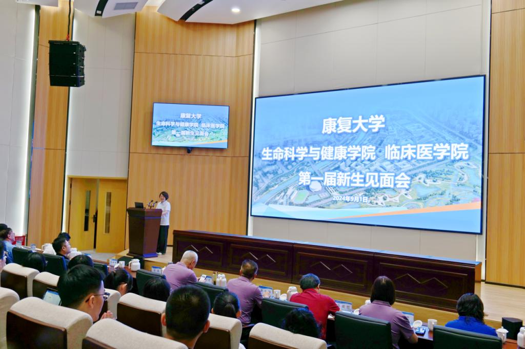 9月1日,康复大学生命科学与健康学院、临床医学院2024级新生见面会在学校行政楼一楼会议室举行。中国工程院院士、康复大学校长董尔丹,党委委员、副校长安琨出席见面会。青岛华大基因研究院副院长黎瀚博,研究生部负责人、临床医学院负责人李士保,教务部负责人、临床医学专业负责人王立祥,山东大学齐鲁医学院本科教育教学办公室副主任周成超,生命科学与健康学院院长刘健康,康复大学青岛医院副院长韩伟,康复大学青岛中心医院党委委员鞠芳,康复大学青岛医院研究生教育管理办公室主任李园美,生命科学与健康学院临时业务负责人张英慧,学院行政管理人员、专业负责人、班主任、助理班主任、班主任指导老师、兼职辅导员、教师代表,以及2024级临床医学专业、生物信息学专业新生参会。会议由生命科学与健康学院临时业务负责人张英慧主持。