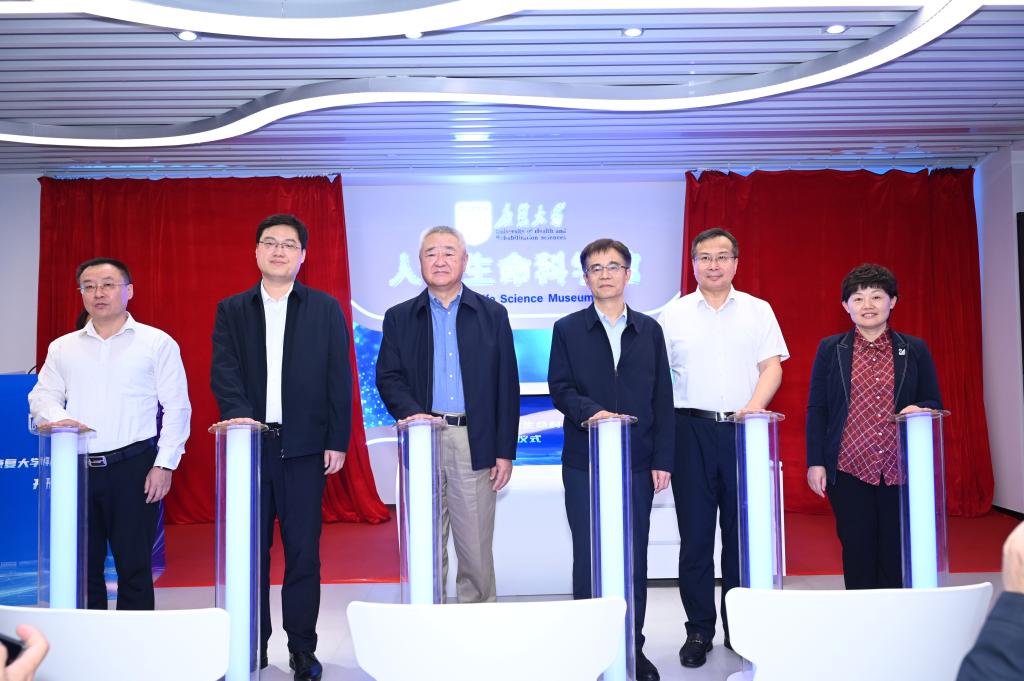 在热烈氛围中,与会领导共同为康复大学人体生命科学馆揭牌。