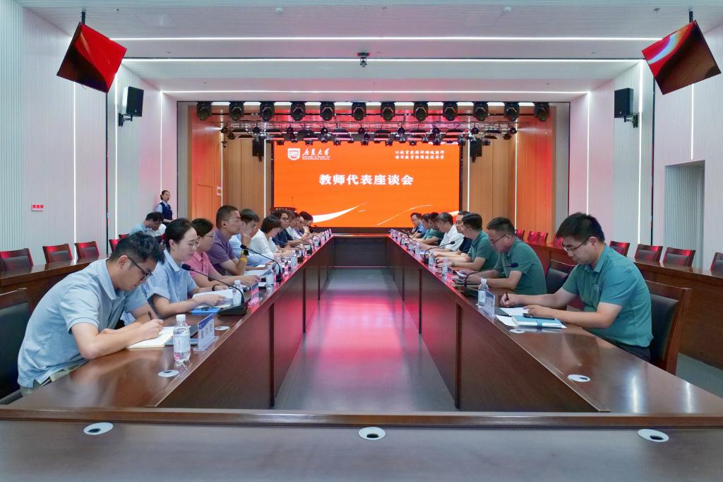 在第41个教师节到来之际,9月9日下午,学校在11号楼学部楼106会议室召开教师代表座谈会。党委书记刘军出席会议并讲话。有关职能部门负责人和各学院(部)教师代表参加了座谈会。