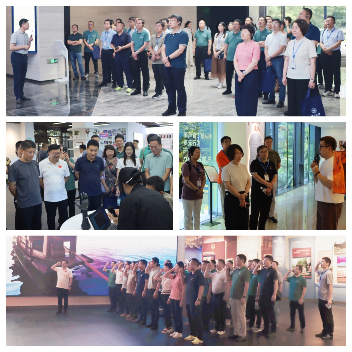 实地调研环节,学员们走进海康威视了解其在人工智能、大数据、物联网等领域的创新应用及企业数字化转型的实践经验,走进阿里巴巴感受其独特的企业文化、平台生态构建和数字化经济的前沿发展,走进强脑科技近距离接触脑机接口等尖端技术及其在康复医疗等领域的应用前景。学员们深刻感受到科技创新的澎湃动力和企业管理的先进理念,为学校未来的学科交叉融合、产学研合作及智慧校园建设提供了宝贵经验。实践教学环节,学员们怀着崇敬的心情前往嘉兴南湖革命纪念馆参观学习,重温建党历史,感悟“红船精神”,接受了一次深刻的革命传统教育和精神洗礼,进一步坚定理想信念,牢记初心使命。