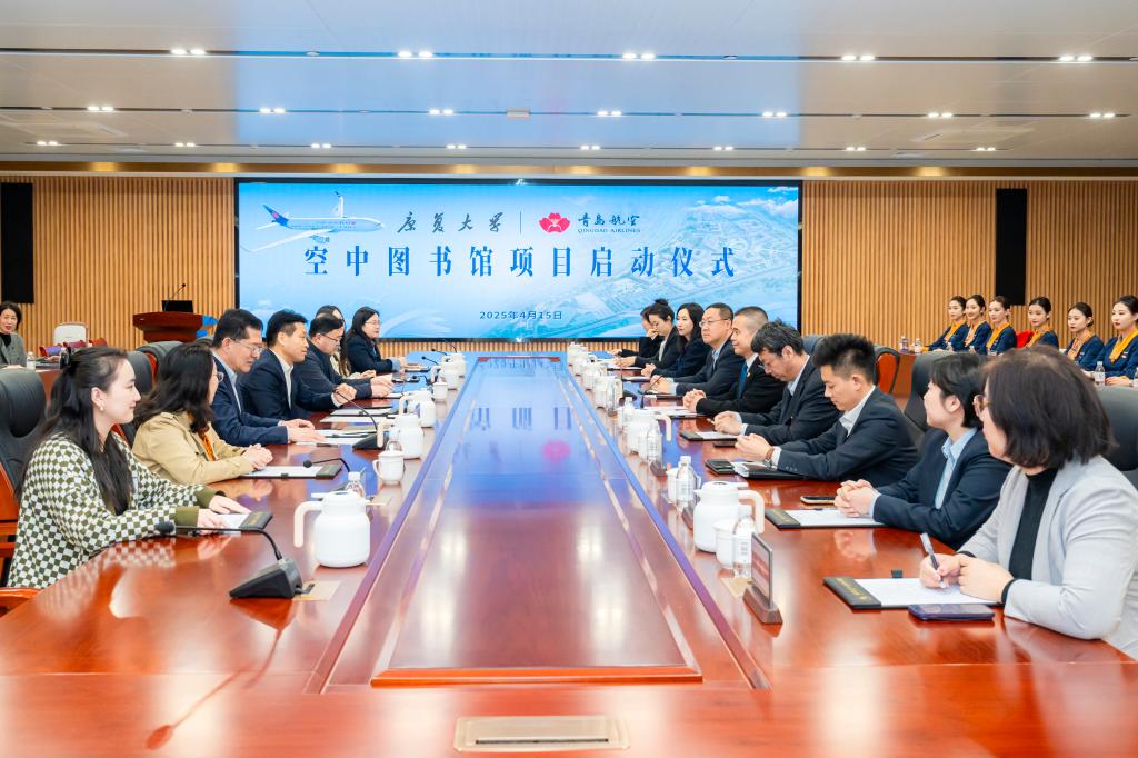 4月15日下午,康复大学&青岛航空“空中图书馆”启动仪式在康复大学图书馆隆重举行。康复大学党委委员、副校长毕建国,青岛航空股份有限公司党委委员、副总裁、工会主席张云光出席仪式并致辞。