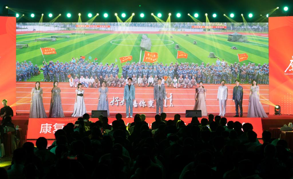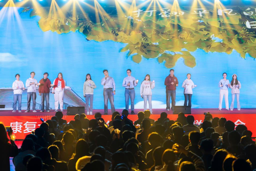 舞蹈《加油amigo》,活力四射的啦啦操和动感的街舞,通过人机共舞的奇幻,展示了科技与艺术的完美交融。舞蹈串烧《时空之缘,逐梦康大》,灵动的身姿和富有节奏感的舞步,带来了古装舞、恰恰、牛仔舞、民族舞的精彩串烧。康复大学第一支乐队“倔强鸵鸟”用热血与激情演绎了一首《生来倔强》,传递出康大人坚韧不拔、永不言败的顽强精神。歌曲联唱《唱响青春》和《闪耀》,纯净而富有朝气的嗓音,唱出了青春的无畏与洒脱。歌伴舞《盛世田园》用真挚的歌声和优美的舞姿,表达对祖国的无限赞美。穿越岁月的长河,聆听祖国的呼唤,合唱《传奇》和《在灿烂阳光下》带大家感受生活的美好与幸福。