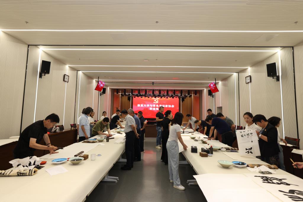 为庆祝中国共产党成立103周年,6月30日,学校与青岛市书法家协会共同开展“庆七一”联谊笔会活动。山东省书法家协会副主席、青岛市书法家协会主席、协会党支部书记郭强,青岛市书法家协会顾问赵善亭、刘健,青岛市书法家协会副主席董坤、高波、张紫溪等十余名党员来到康复大学,为学校和老师们题写书法作品,共同迎接党的生日。康复大学(筹)临时党委副书记、领导小组常务副组长王伟出席活动,部分党员干部、离退休干部和党员代表参加活动。