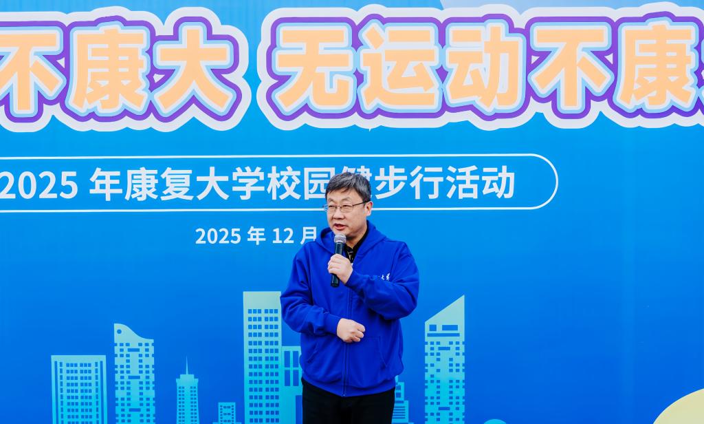 活动伊始,学校党委书记刘军发表致辞。他强调,健康是人类永恒的追求,更是康复大学办学理念的核心关键词。我们不仅致力于培养康复人才、研究健康科学技术,更应率先垂范,将主动健康、积极生活的理念融入校园文化。这场健步行正是践行“无体育不康大、无运动不康大”理念的生动体现。作为康复大学的建设者,希望大家以此次活动为契机,把体育精神融入育人实践,以更强健的体魄和更饱满的热情投入到建设高水平研究型大学的新征程中。