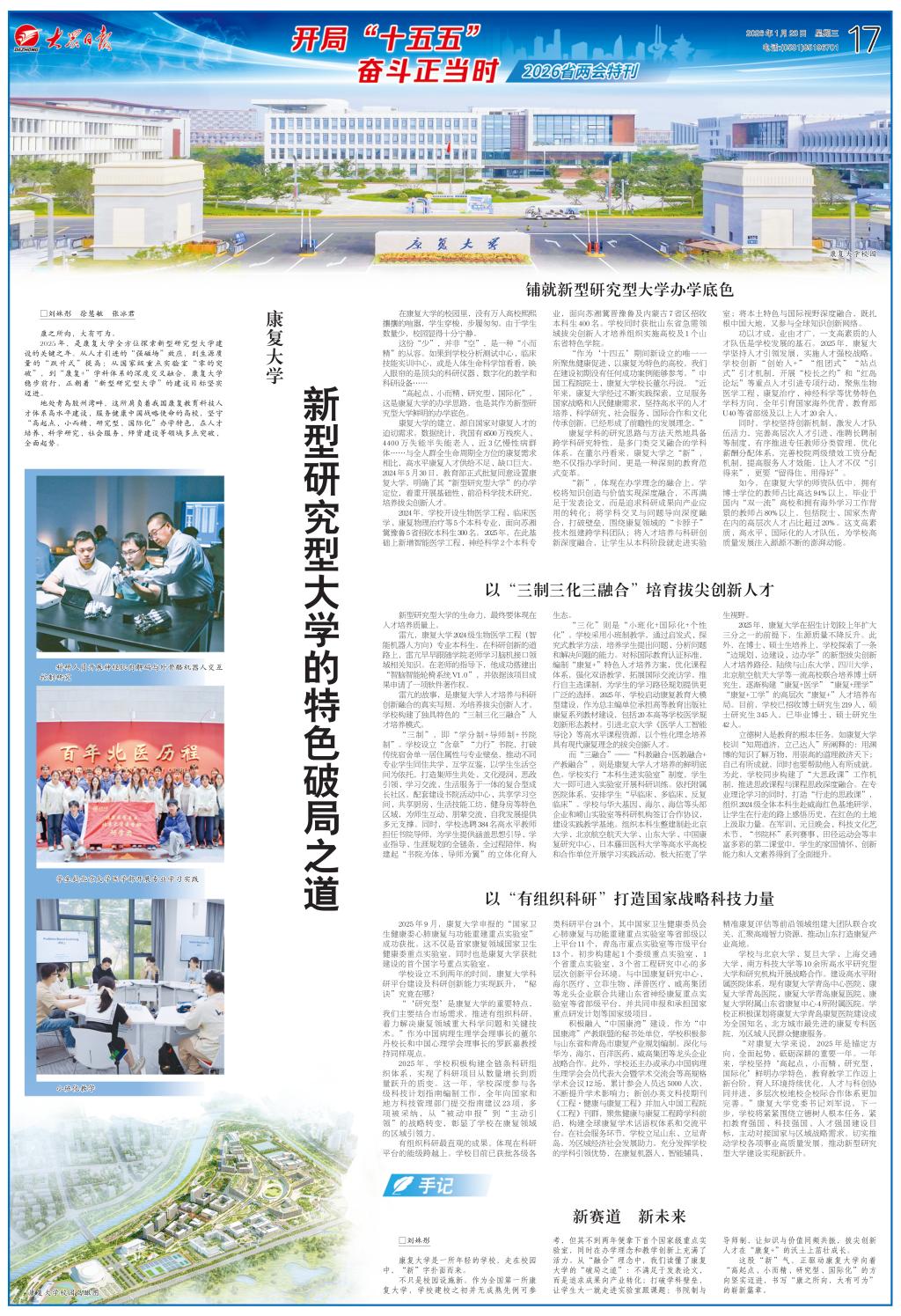 2026省两会特刊:康复大学 新型研究型大学的特色破局之道