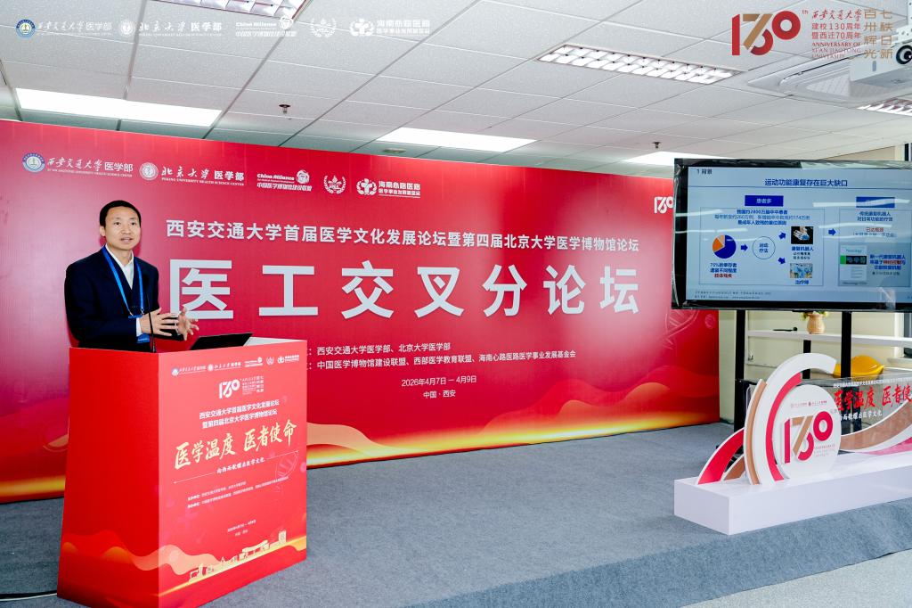 在主论坛上,董尔丹被聘为中国医学博物馆建设顾问专家委员会专家顾问,并代表学校参加了北京大学医学博物馆论坛交接仪式。在中国科学院院士、中国科学技术协会名誉主席韩启德的见证下,董尔丹从西安交通大学接过第五届“北京大学医学博物馆论坛”的主办权。他以“浅谈科研范式变革中的医学科学研究”为题作大会报告。报告立足当前全球科技革命与医学交叉融合的时代背景,深入分析了科研范式从传统假设驱动向数据驱动、智能驱动的深刻转变,阐述了康复医学在范式变革中的新机遇与新挑战。报告视野宏阔、见解深刻,赢得与会专家学者的高度评价。在医工交叉分论坛上,康复科学与工程学院副院长路知远作了题为“面向多自由度康复机器人的肌电接口”的学术报告。