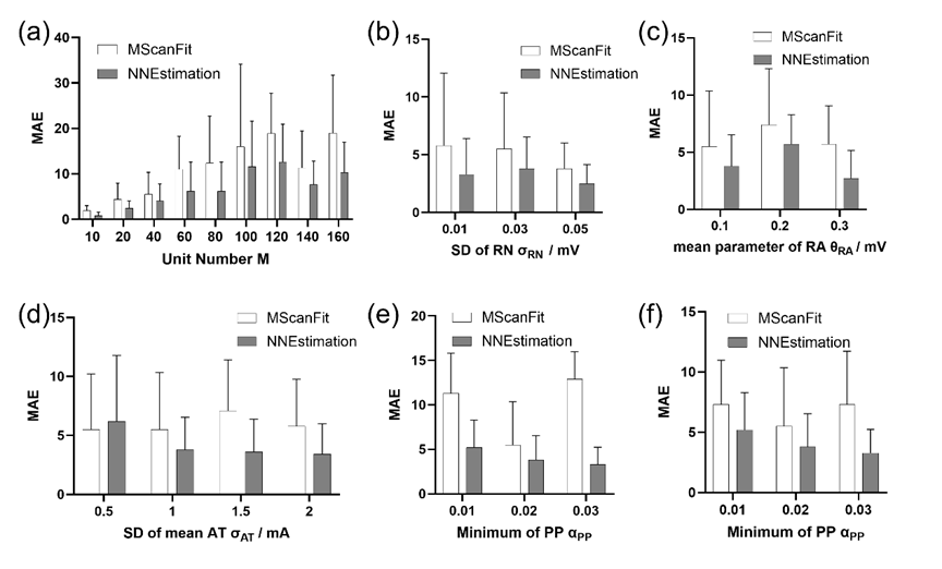 该研究证实了深度学习在运动单位数量估计中的可行性与优越性,突破了传统方法在速度与精度上的限制,将检测时间由“秒级”提升至“毫秒级”。NNEstimation提供了一种不依赖人工经验、自动化、高鲁棒性的分析工具,有望推动运动单位数量估计在临床中的标准化与广泛应用,为神经肌肉疾病的早期诊断与疗效评估开辟智能化新路径。