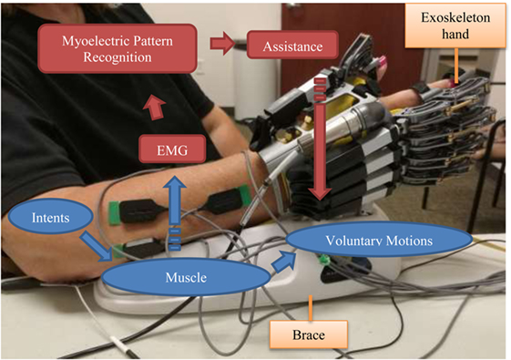 图2.肌电模式识别驱动的多自由度康复机器人(图片来源于论文)