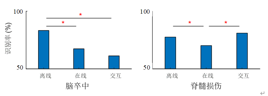图3. 脑卒中和脊髓损伤患者的肌电模式识别正确率